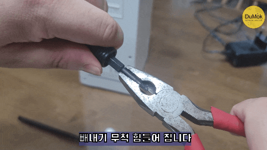 이렇게 장착하지 않을 경우 나중에 빠지지 않게 되어서 뺀치로 잡아 빼야 하는 상황까지 오게 돼요.