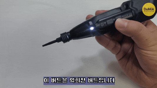 이 버튼은 역회전 버튼입니다. 나사를 풀 때 사용하죠.