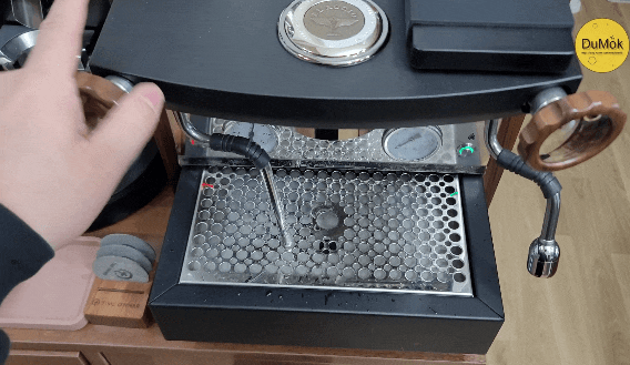 하단 부분은 백플러싱 된 물이나 추출시 흘리는 커피액 및 원두 가루 그리고 물 등을 받아주는 역활을 합니다.